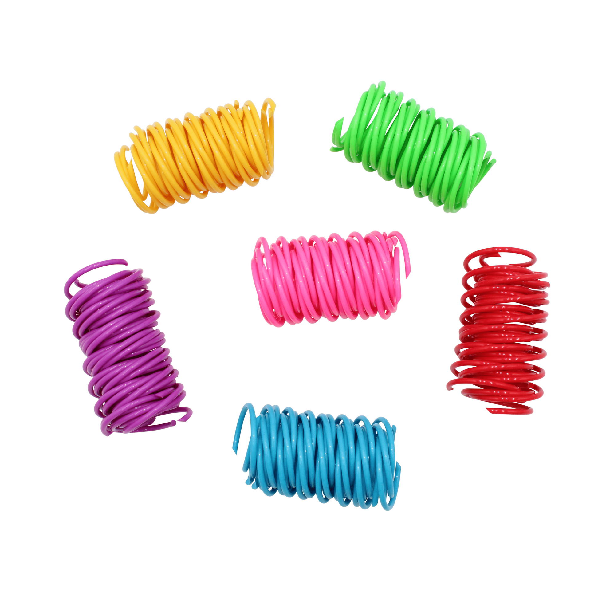 Cats love a good game of "bouncy springs" and have fun chasing the colorful spring cat toys around while their unpredictable bounce will keep them entertained! The spring cat toys encourage activity and exercise and the unpredictable movements will keep your cat pouncing, swatting, chasing and entertained for hours!