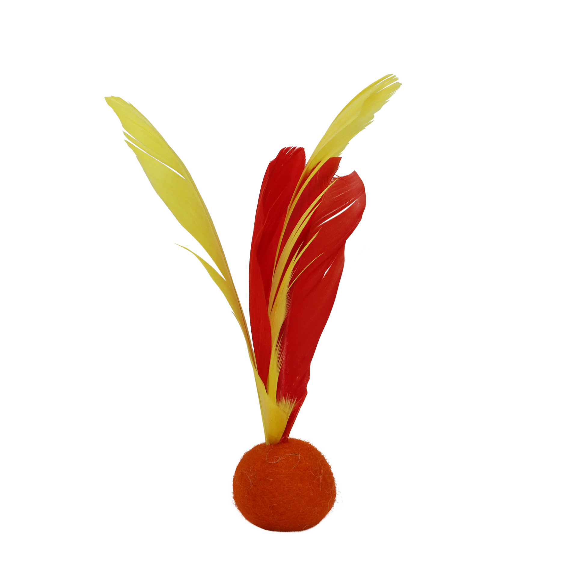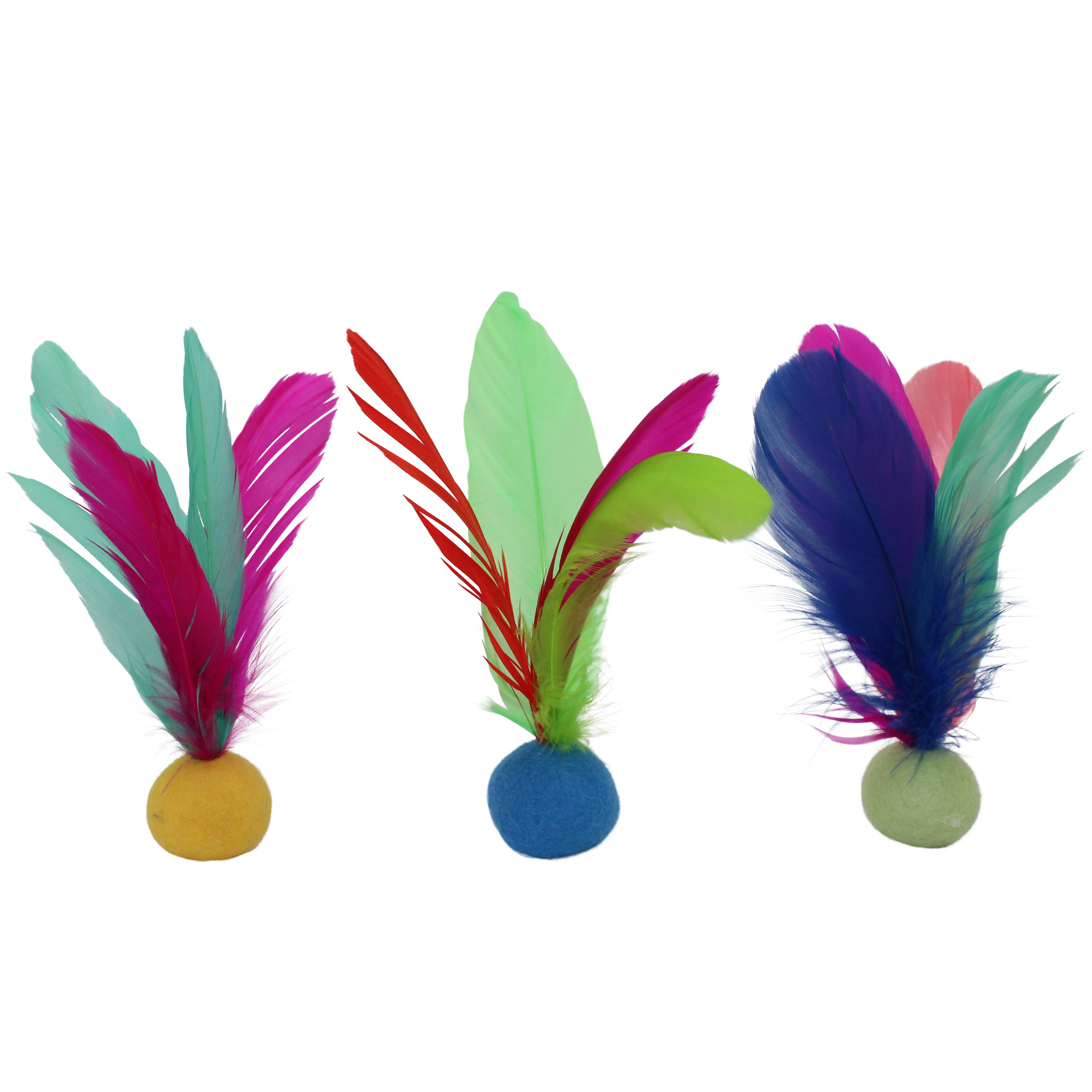 These toys are designed for cats who love to pounce, stalk, and swat their way through life like they're the main act at a feline carnival. Each one features a sturdy wool felt ball base, topped with a vibrant spray of dyed feathers that flutter and bounce with every touch — like confetti in motion!
